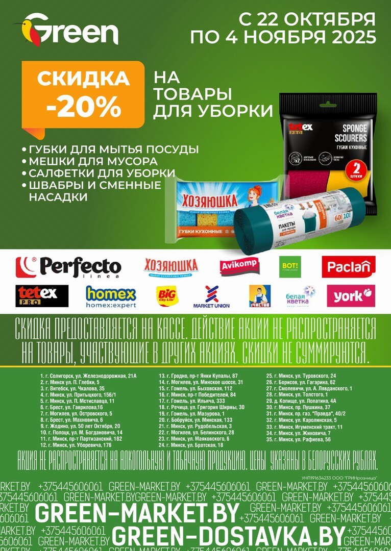Скидки на Грин в Витебске дают возможность каждому жителю города насладиться качественными товарами по сниженным ценам. Откройте для себя мир где качество встречается с доступностью.