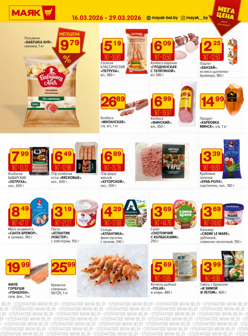 Маяк — это удобная сеть магазинов у дома, где можно быстро купить всё необходимое: от свежих продуктов до товаров для быта. Магазины работают в Минске, Бобруйске, Борисове, Белыничах, Быхове, Горках, Лошнице и Красносельском. Цены доступные, часто проходят акции и скидки. Большинство магазинов открыто с 8:00 до 23:00. Актуальное время работы лучше уточнять на сайте или в самом магазине.Магазины