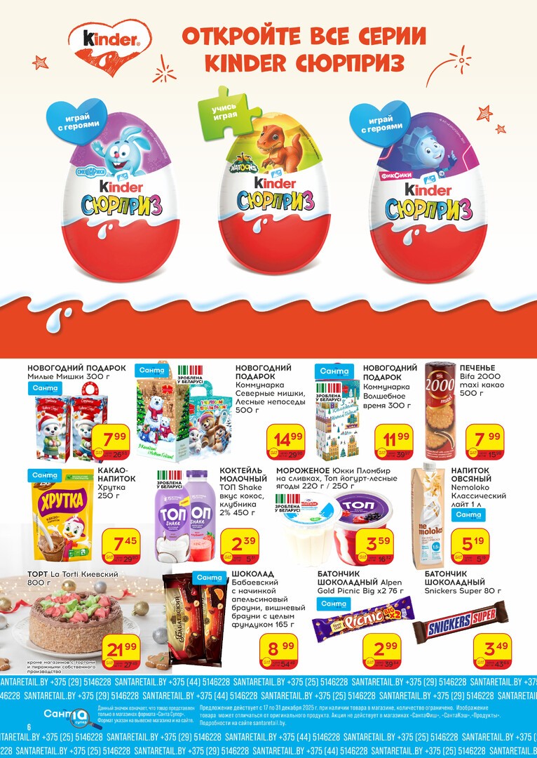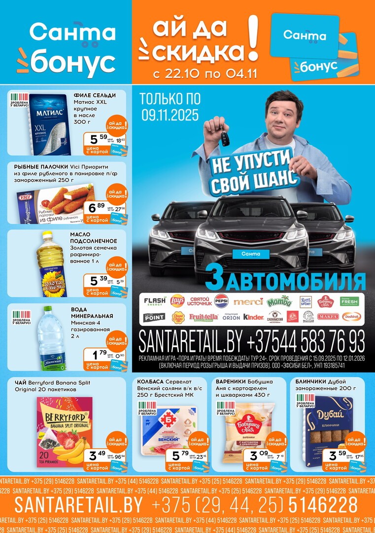 Магазин Санта предоставляет отличные возможности для экономии. На Kupon.by вы всегда можете найти актуальные акции Санта с множеством предложений. С их помощью можно приобрести товары по сниженным ценам. Скидки распространяются на определенные категории товаров, сезонные распродажи, новинки или выгодные наборы продуктов. Например, приуроченные к праздничным дням акции магазина Санта позволят сэкономить семейный бюджет. Сеть магазинов в Минске и других городах Беларуси делают покупки доступными для каждого. Уровень финансовых возможностей в расчет не принимается.