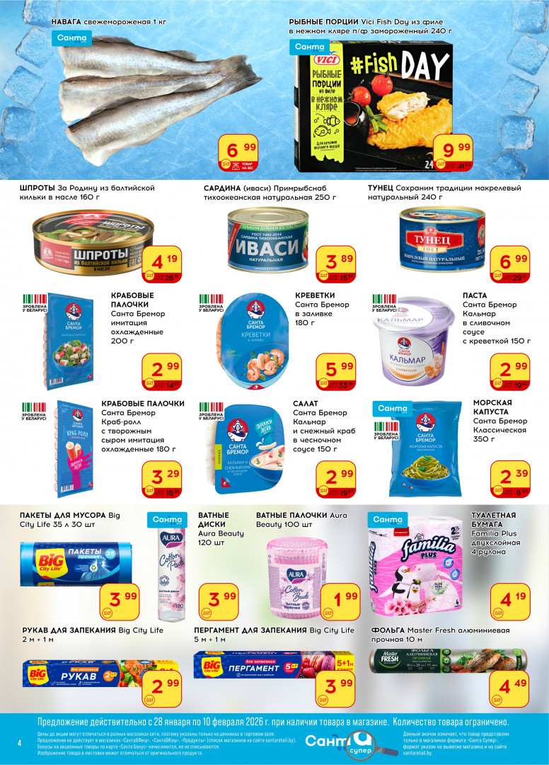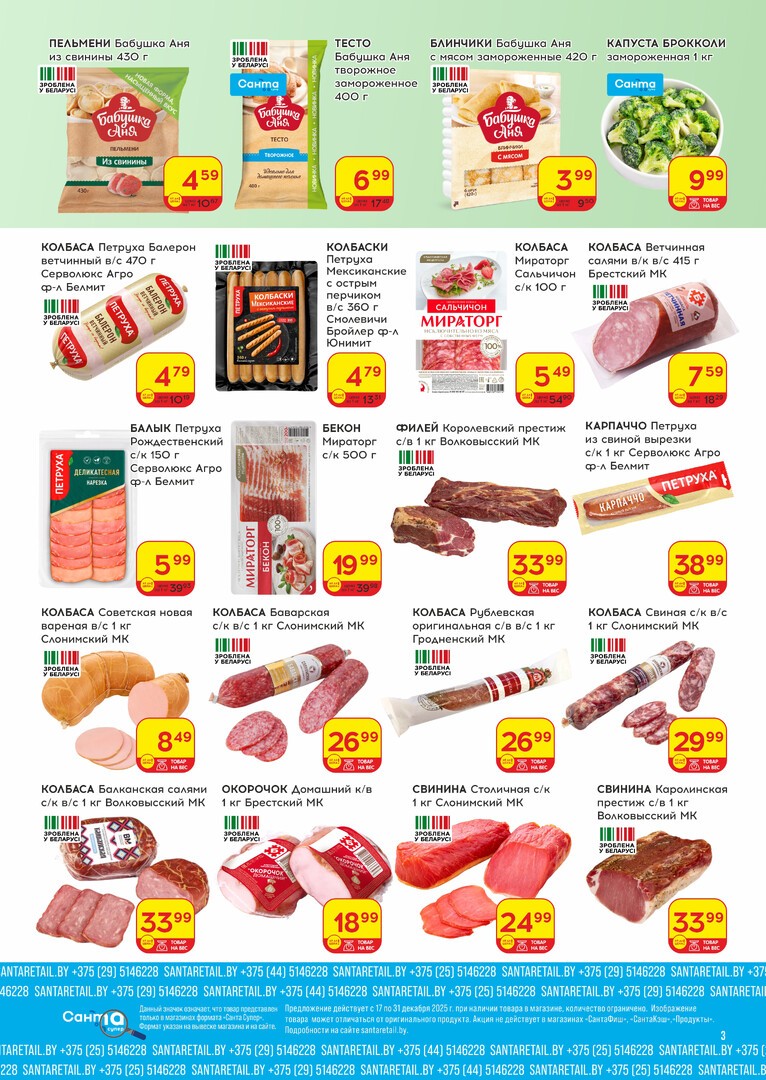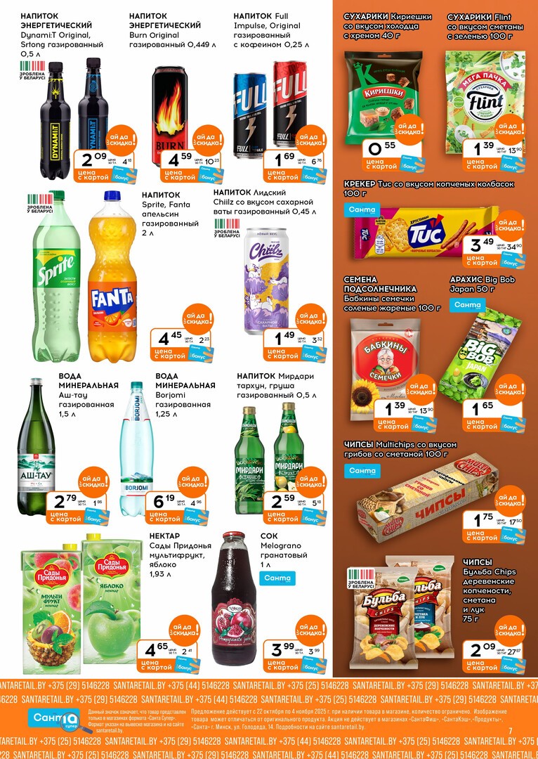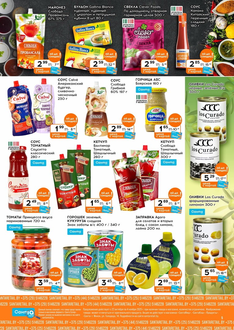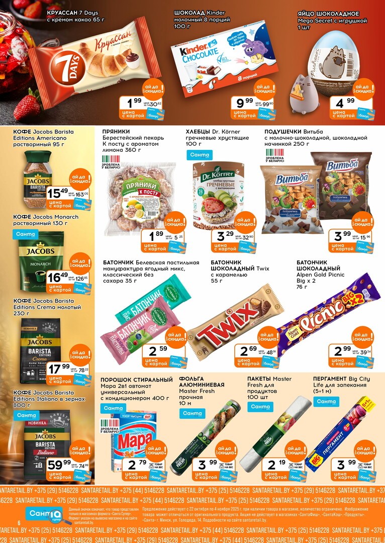 Скидки в магазине Санта распространяются на широкий ассортимент товаров. Вы можете выиграть в цене на продуктах питания, напитках, товарах для дома, детских товарах и многом другом. Особенно выгодно покупать по акциям: мясо, рыбу, молочные продукты и свежие овощи, которые составляют основу ежедневного рациона.