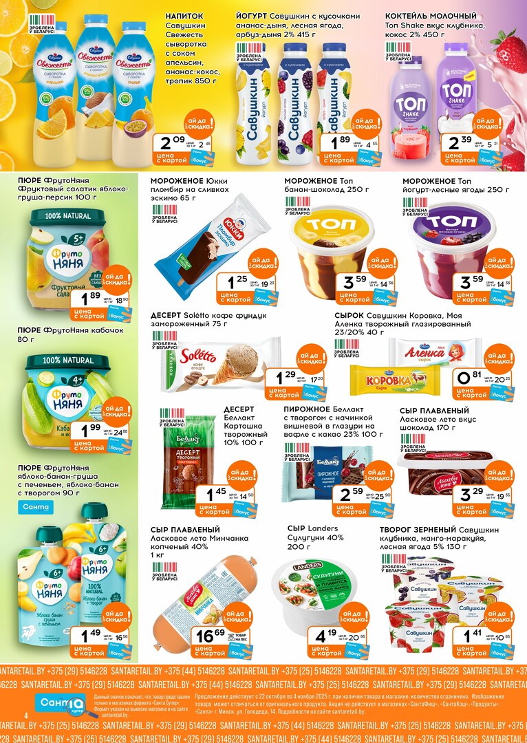 Важной частью ассортимента являются продукты местного производства, которые славятся своим качеством и свежестью. Санта активно сотрудничает с белорусскими фермерами и производителями, предлагая своим клиентам самые свежие и натуральные продукты по выгодным ценам. Это не только поддержка отечественного производителя, но и гарантия того, что на вашем столе всегда будут полезные и вкусные изделия.