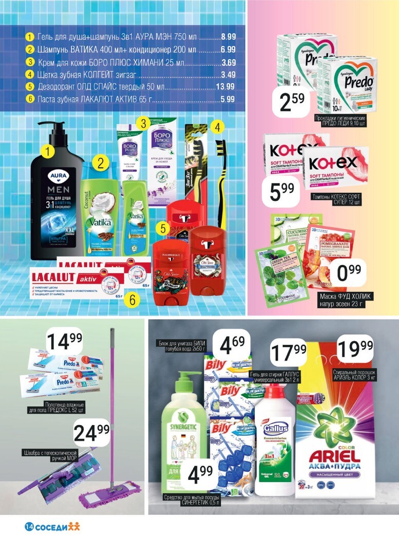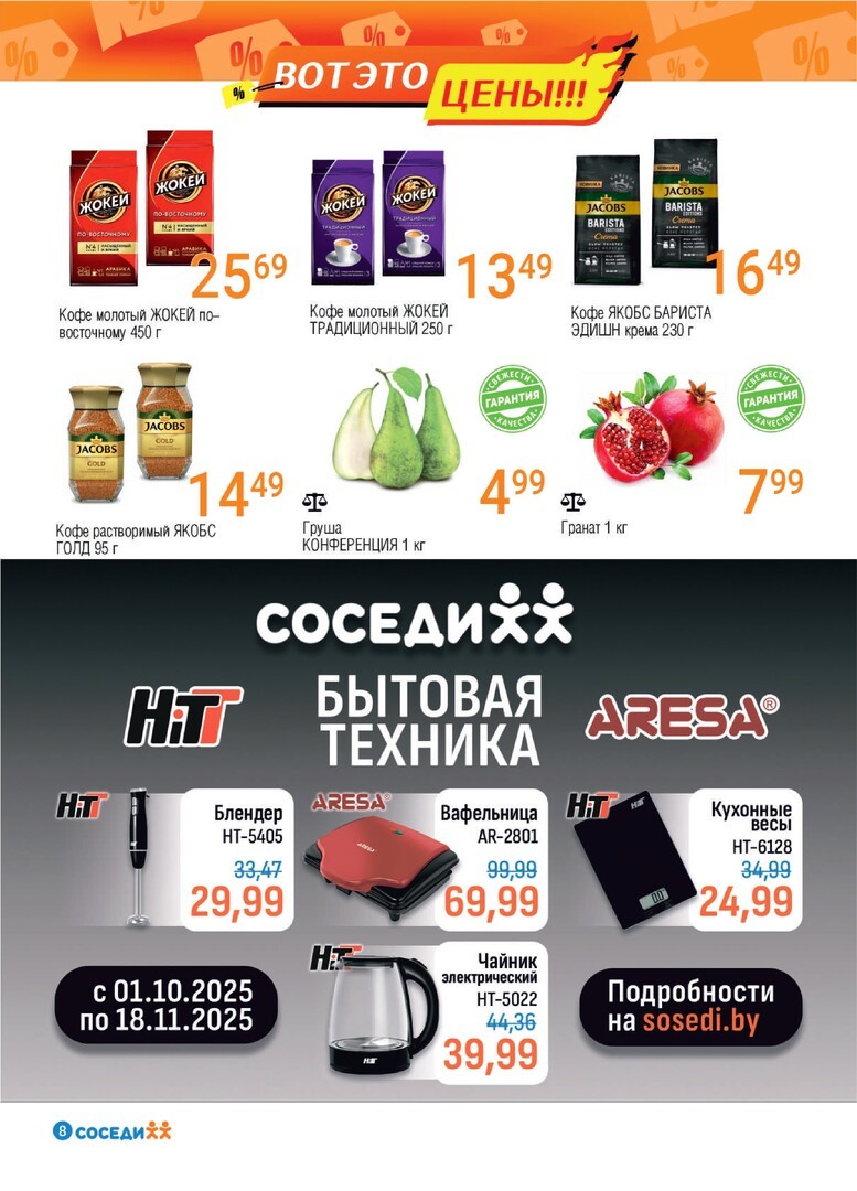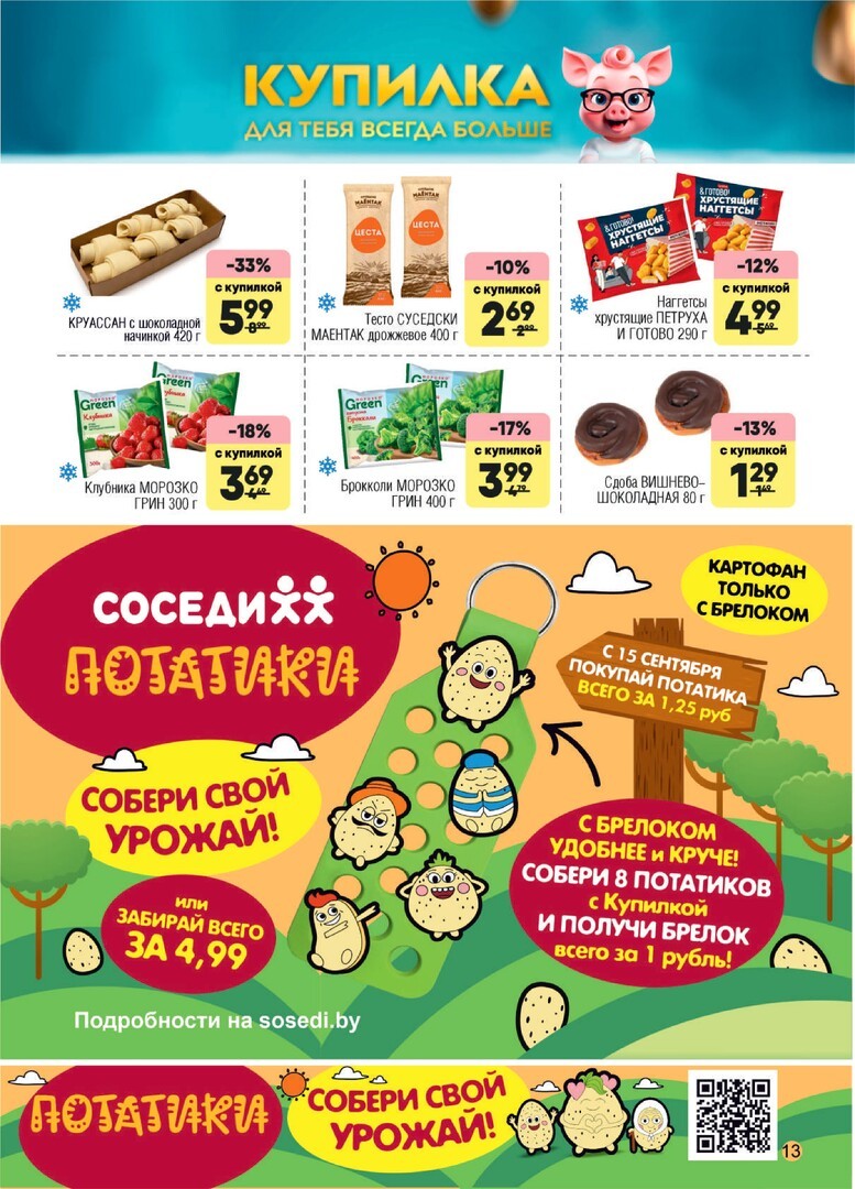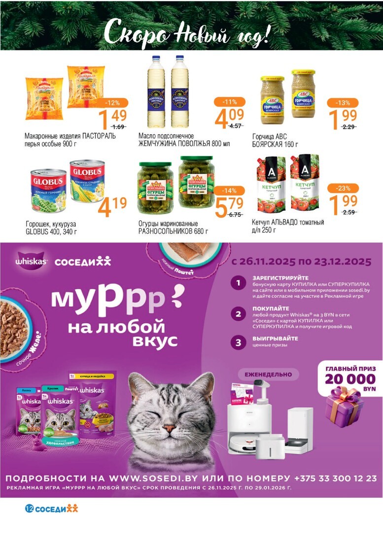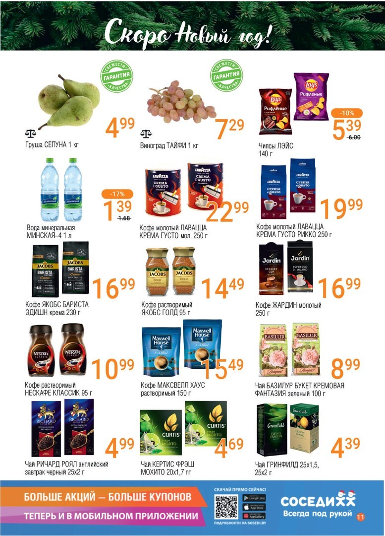 Супермаркет Соседи - это универсальное место для ежедневных покупок, где каждый найдет все необходимое от свежих овощей и фруктов до качественных мясных продуктов. В продаже разнообразие товаров, доступные цены и постоянное обновление ассортимента. Наш магазин славится дружелюбным сервисом и удобным расположением. Регулярные акции и скидки делают покупки еще более приятными. Посетите Соседи за выгодным шопингом. Для дополнительных экономий не забудьте проверить купоны и промокоды на сайте kupon.by.